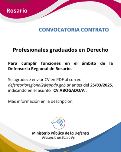 Las personas contratadas deben acreditar que no incurren en ninguna causal de incompatibilidad para desempeñar funciones en el Estado, conforme a lo previsto en la Ley provincial 10.469, y respetar las demás condiciones establecidas en la Resolución 33/2015 de la Defensoría General.