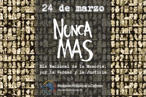 A 50 años del golpe de Estado cívico-militar de 1976, el Ministerio Público de la Defensa de la Provincia de Santa Fe ratifica su compromiso con la Memoria, la Verdad y la Justicia, como bases indispensables de una sociedad democrática y del respeto efectivo de los Derechos Humanos.