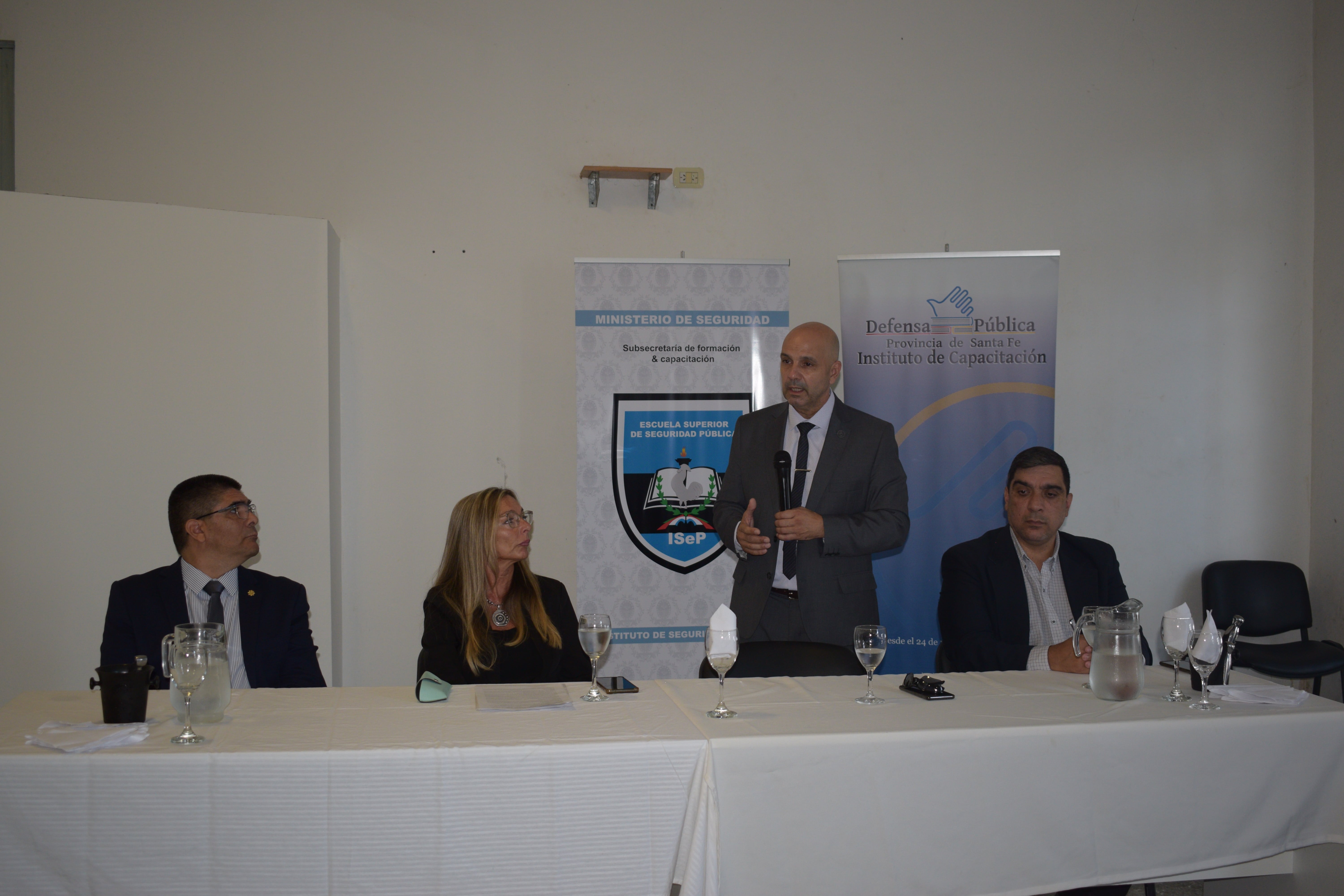 De la actividad, desarrollada en la sede del Instituto de Seguridad Pública IseP-, ubicado en la localidad de Recreo, participaron además el Ministro de la Corte Suprema de Justicia de la provincia de Santa Fe, Dr. Rafael Francisco Gutiérrez; el Director General del ISeP, Mg. Ariel Sánchez; y el Subsecretario de Formación y Capacitación Policial, Cristian Battaglino. Asimismo, toda la plana mayor de la policía presenció el acto de apertura como así también el Director General del Servicio Penitenciario, Lic. Gabriel Leegstra.