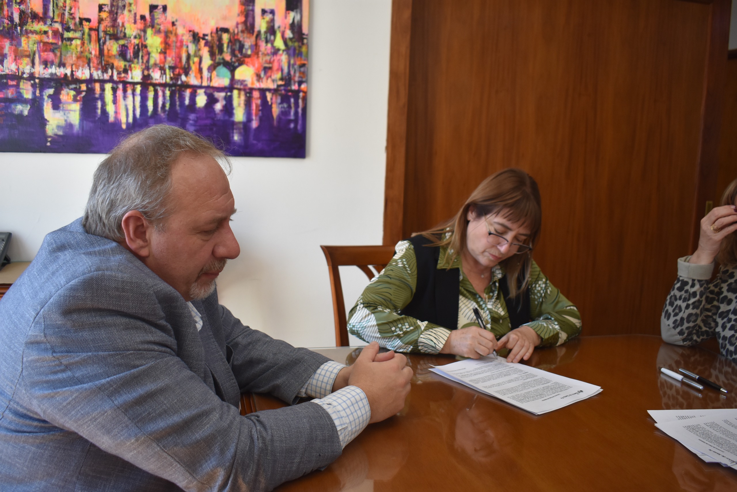 La Defensora General, Dra. Estrella Jorgelina Moreno Robinson, rubricó el acuerdo con el Gerente del Sector Público del Nuevo Banco de Santa Fe, Juan Carlos Perosino, en un encuentro que tuvo lugar en la Sala de Reuniones de la Defensoría General, en la ciudad de Santa Fe.