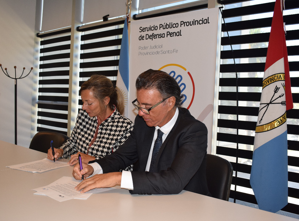 El Servicio Público Provincial de Defensa Penal -SPPDP- y la Carrera de Posgrado de Especialización en Derecho Penal de la Facultad de Derecho de la Universidad Nacional de Rosario, firmaron el martes un convenio de colaboración específico a los efectos de estrechar vínculos de asistencia académica y técnica para la formación práctica profesional.
