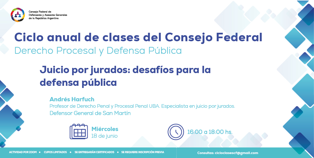 a cargo de Andrés Harfuch (Profesor Derecho Penal y Procesal Penal UBA. Especialista en juicio por jurados. Defensor General de San Martín)