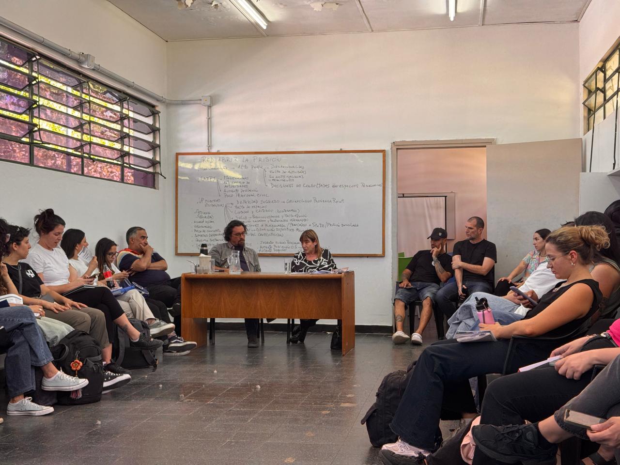 La jornada se desarrolló sin expositores formales, priorizando el intercambio colectivo en el marco de talleres. Los participantes se organizaron en grupos a modo de abordar las particularidades y transformaciones que se observan actualmente en cada contexto de encierro.